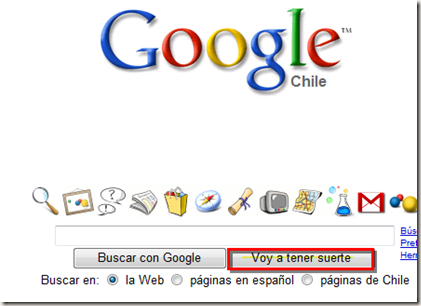 Desde los inicios de Google, el buscador ha incluido un botón, que si bien parece bastante inútil, se ha convertido en todo un reflejo de la "filosofía Google": el clásico "Voy a tener suerte", que intenta transmitir el mensaje de que el buscador en tan bueno que lo mas probable es que el primer resultado arrojado sea exactamente lo que estas buscando.