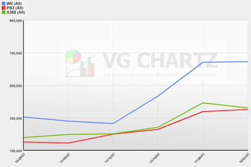Gráficos en VG Chartz || Relacionados: Las ventas de la PS3 superan "punto de inflexión", según Sony | Xbox 360 alcanza 13.6 millones de unidades vendidas y la PS3 triplica sus ventas con respecto al 2006