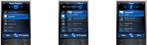 Esto concuerda además con una noticia reciente acerca de las novedades que tendrá Windows Mobile 7. Según fuentes cercanas a Microsoft, el nuevo SO para móviles pondrá su acento en "exprimir el potencial de las pantallas táctiles" (frase que siento haber escuchado en otras ocasiones). Se menciona que WM7 utilizará la cámara del teléfono para detectar los movimientos y poder reconocerlos para poder ejecutar cada una de las ordenes, además el teléfono tendrá diferentes comportamientos dependiendo donde se encuentre, por ejemplo en nuestros bolsillos o encima de la mesa. Aquí van algunas capturas y conceptos: